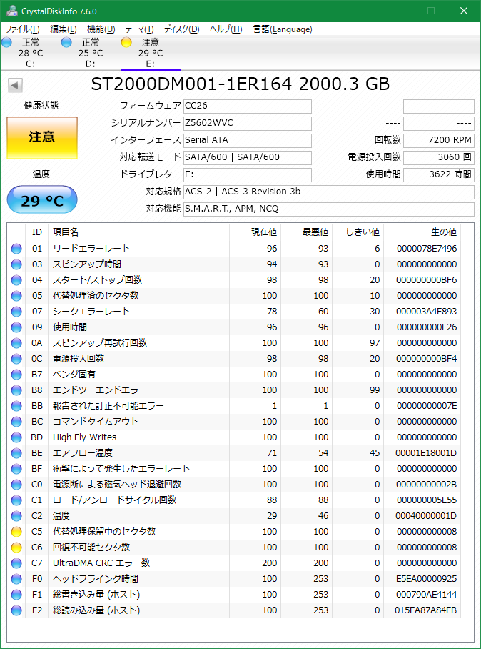 余談ですが、Before Power Off のデバッグのためEドライブのデフラグをやりすぎたせいでバッドセクターができてしまいました。