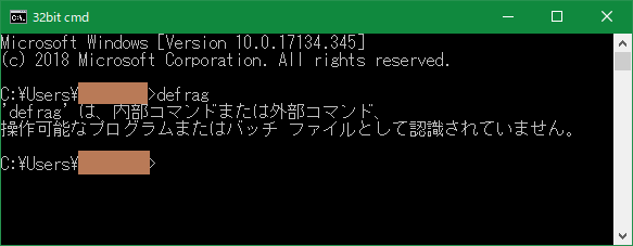 「defrag」コマンドを認識してくれません。